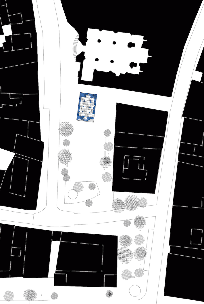 El objeto del proyecto es dar a la plaza de San Bartolomé el patio de butacas perfecto para ver un espectáculo, para asistir a la proyección de una película durante la noche o para reunirse con un grupo de amigos; para ello se dispone a modo de alfombra los 20 paneles con los que se cuenta, los cuales, unidos con pletinas empotradas por su cara superior, dibujan la planta de la iglesia de San Bartolomé (Planta de 1986 cedida por la Diocesis de La Rioja) El dibujo de dicha planta, realizado con pintura sobre los paneles, deja a la vista aspectos antes velados del elemento arquitectónico más significativo del lugar.